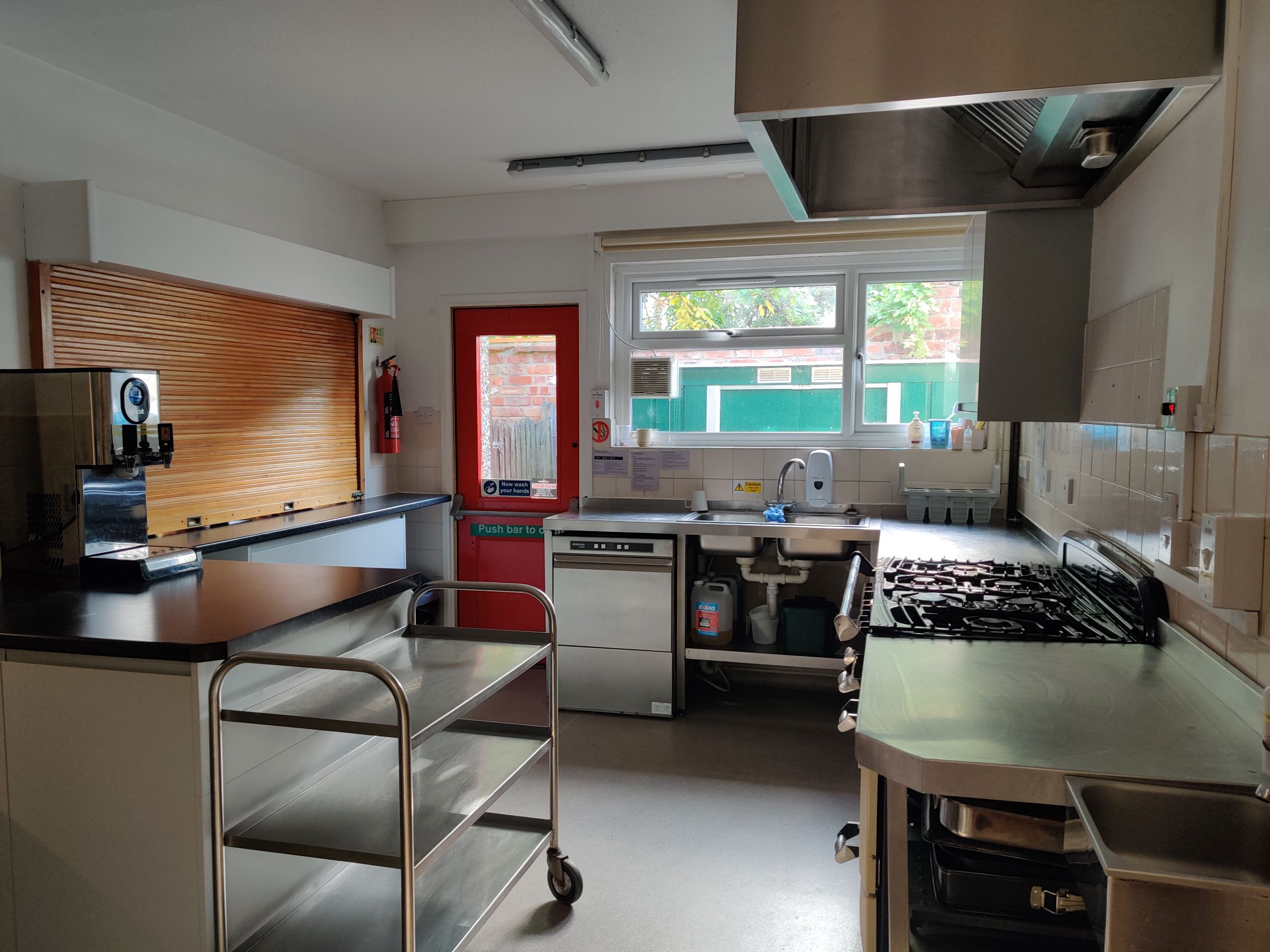 The main kitchen has a serving hatch to the main hall and a cooker with two ovens, a commercial-grade dishwasher, an instant hot and chilled water dispenser, a refrigerator, a microwave oven, crockery, cutlery and other kitchen utensils.